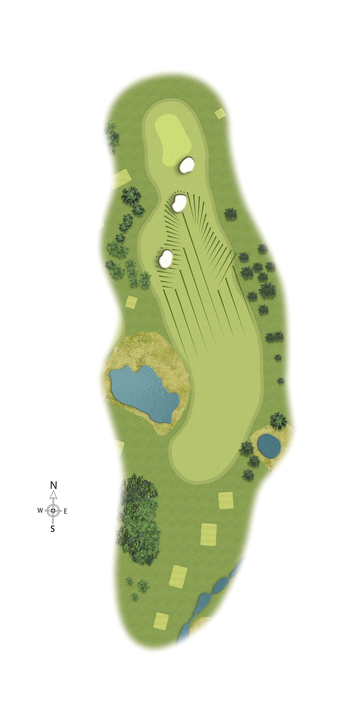 Long-hitters may be tempted to try to go for the green of this short par 4. Ali other players should make sure to avoid the two fairway bunkers with their drive or wilh their second shot as any bunker shot from there is long and difficult. This is another green where missing on the right is not loo bad but avoid going long or left of this green.