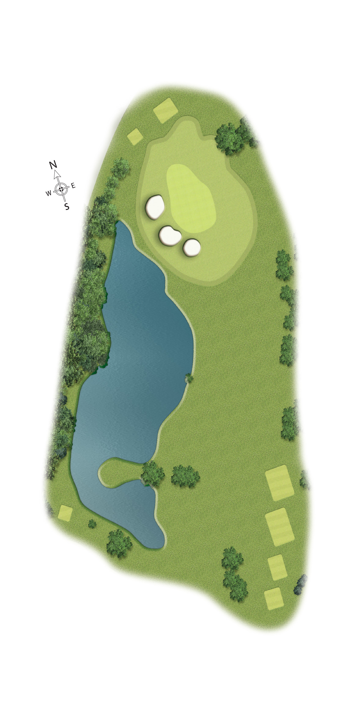 While this Par 3 is not overly long, the crowned and elevated green is very well defended: Any shot that is not struck perfectly will either find one of the three well positioned bunkers or is likely to end up to the right of the green or behind it, so pin position should be carefully observed. For front pin positions, it may be smart to to lay up short right of the green which leaves a straightforward chip.
